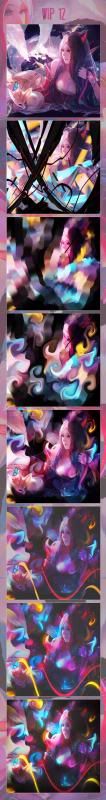 W tego typu pracach trudno mi opisywać wipy, bo zawsze mam dużo warstw i ciężko mi się połapać, które były użyte i w jakim celu. Postaram się jednak pokrótce opowiedzieć o poszczególnych etapach.
